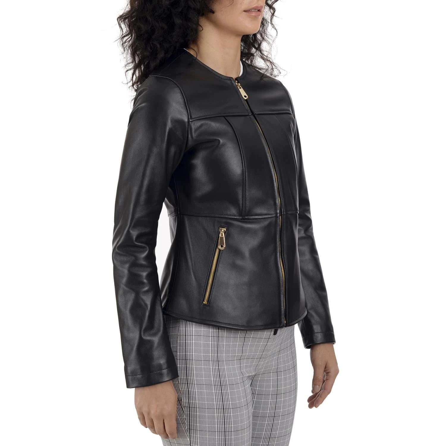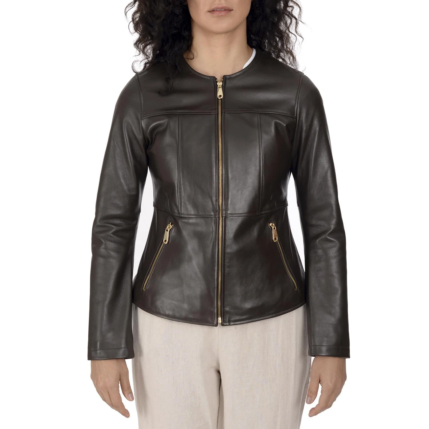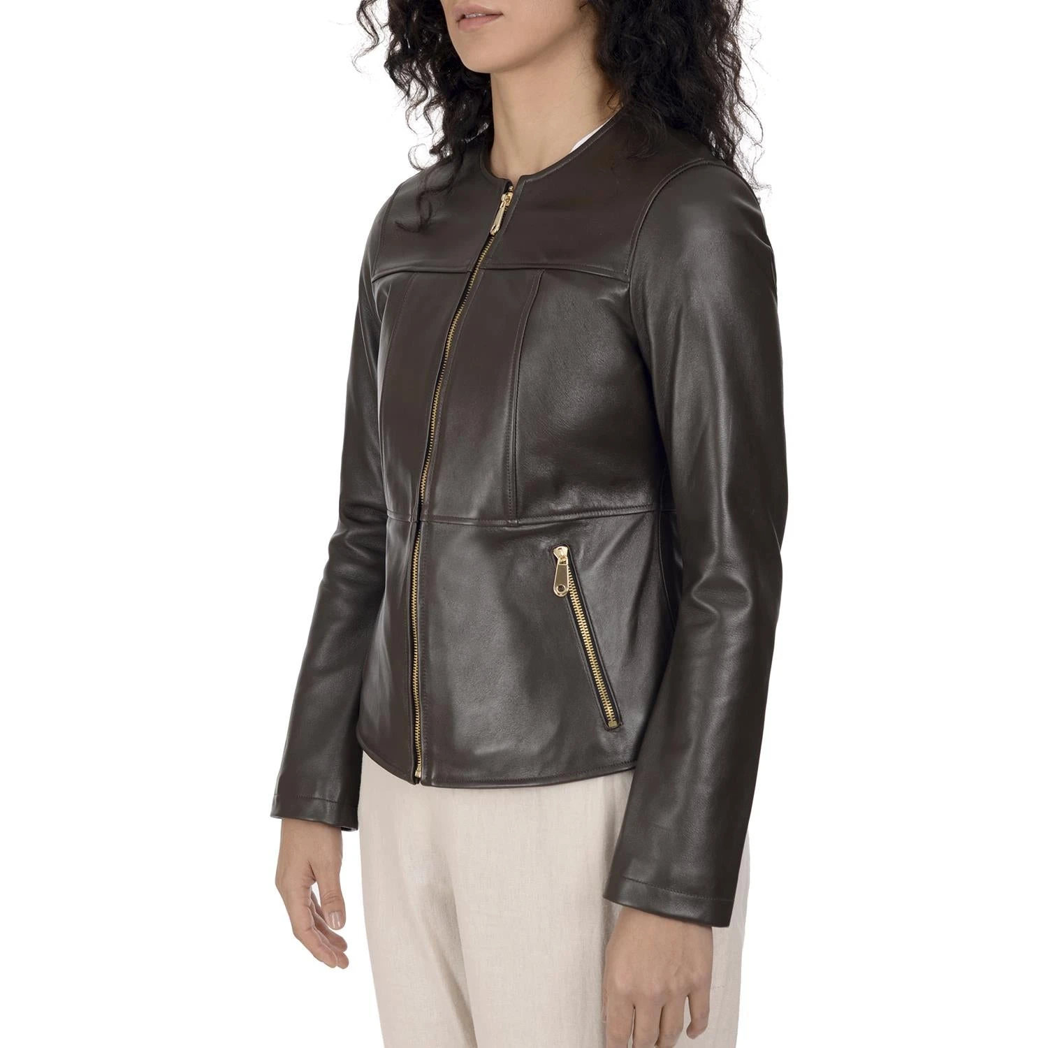 Nine West Banded Collar in soft lamb leather with a smoother & clean finish, 2 side entry pockets and the body is slightly longer to provide a comfortable & flattering fit.