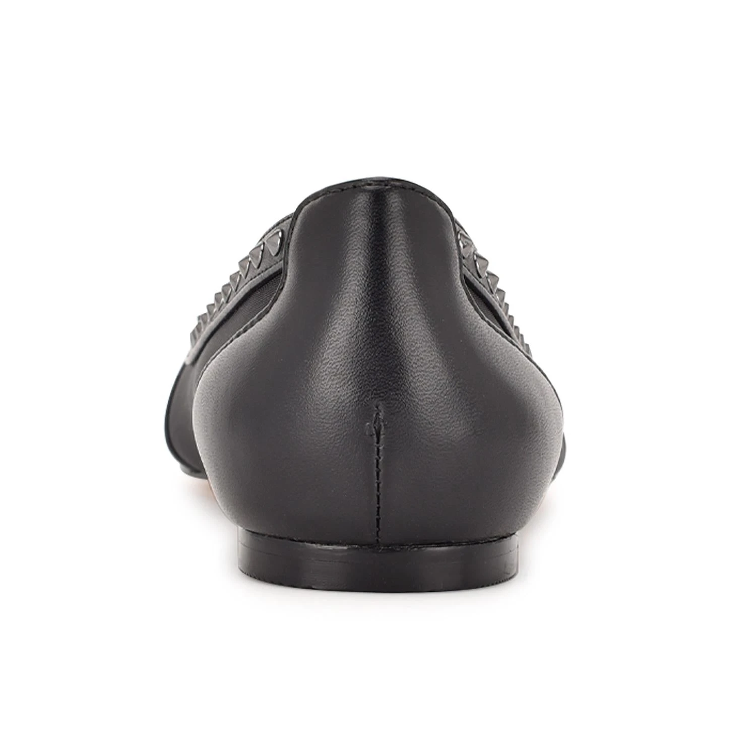 The Bizzie pointed toe flat is perfect for any casual everyday look. These flats feature a leather like toe and heel cap and a subtly sexy mesh sides and a studded collar.