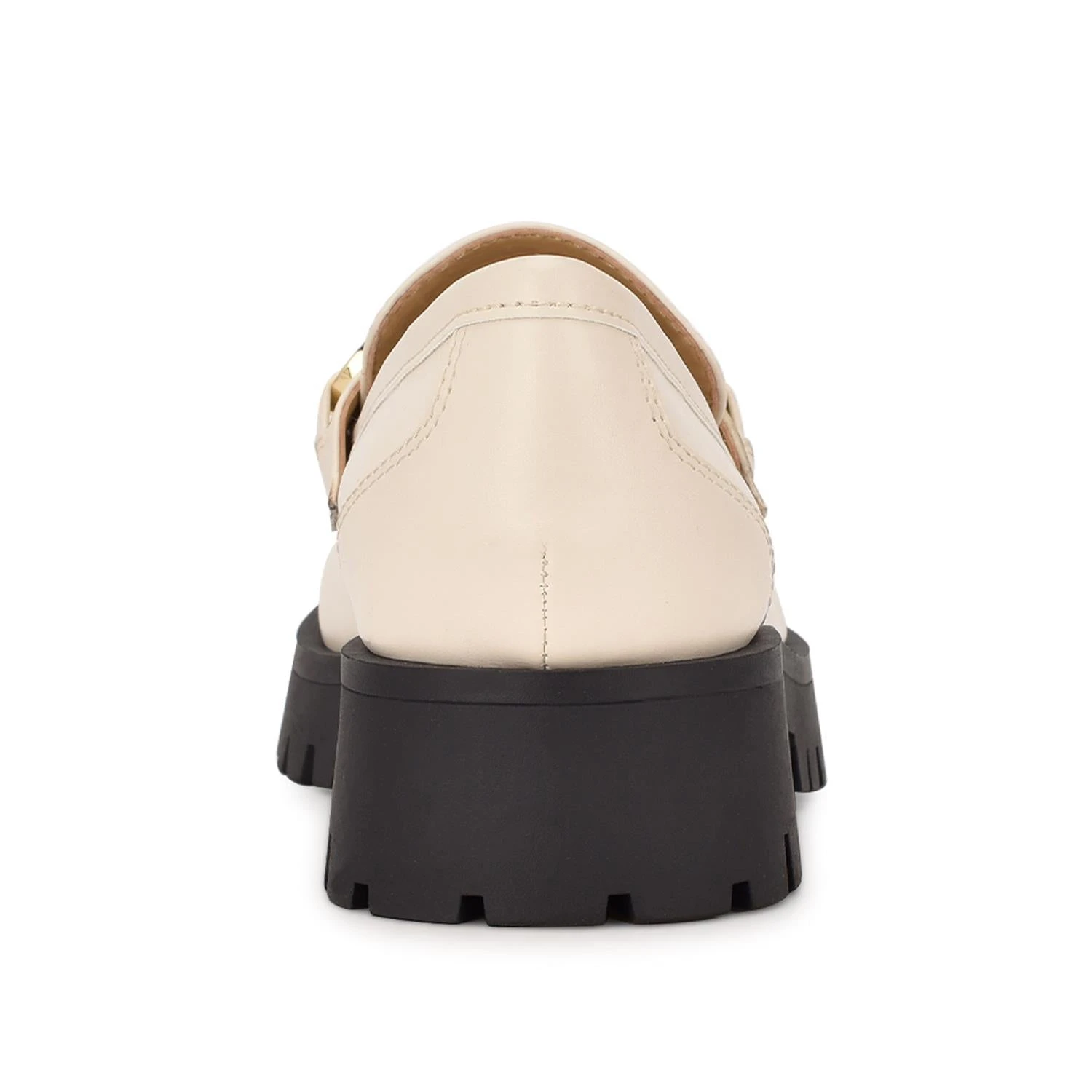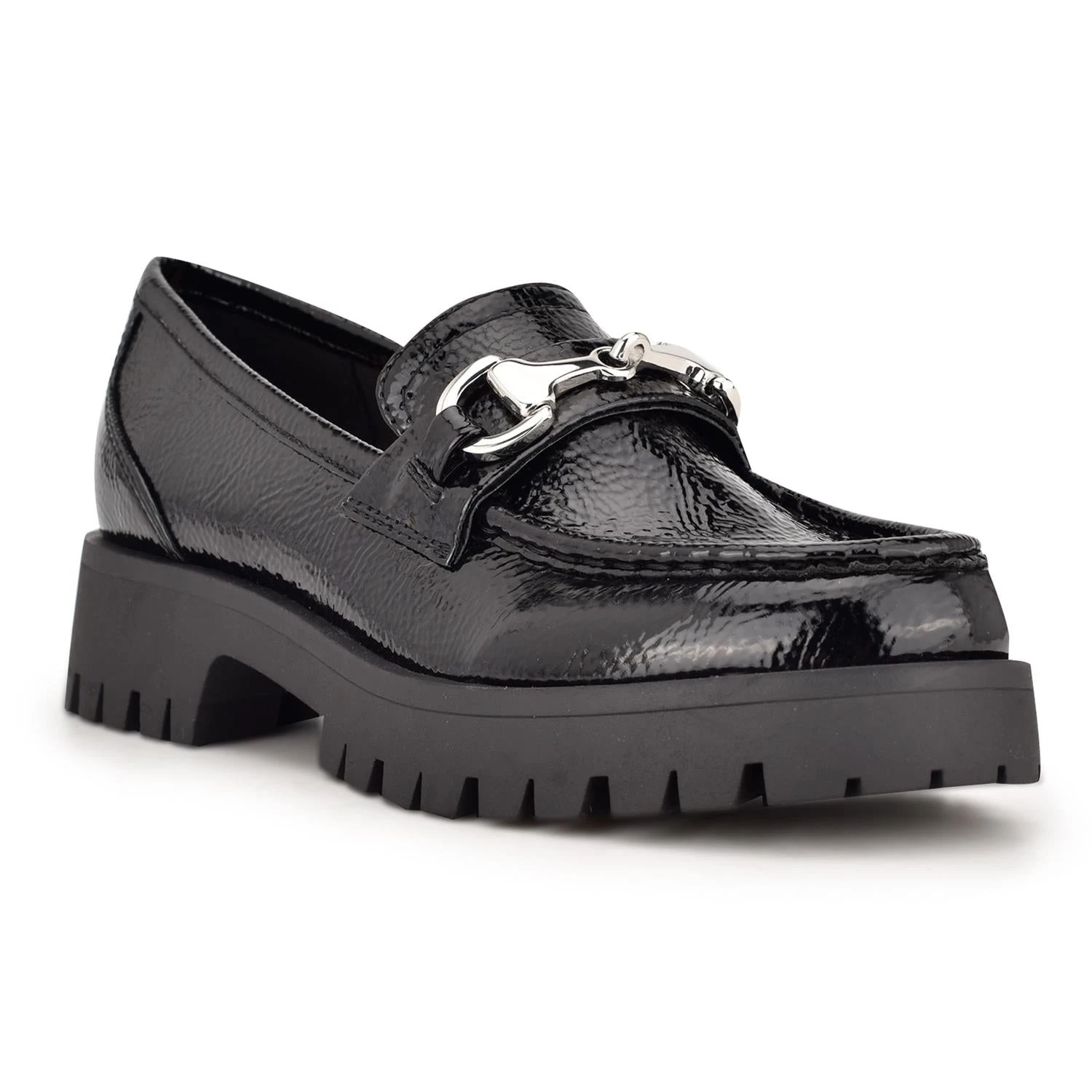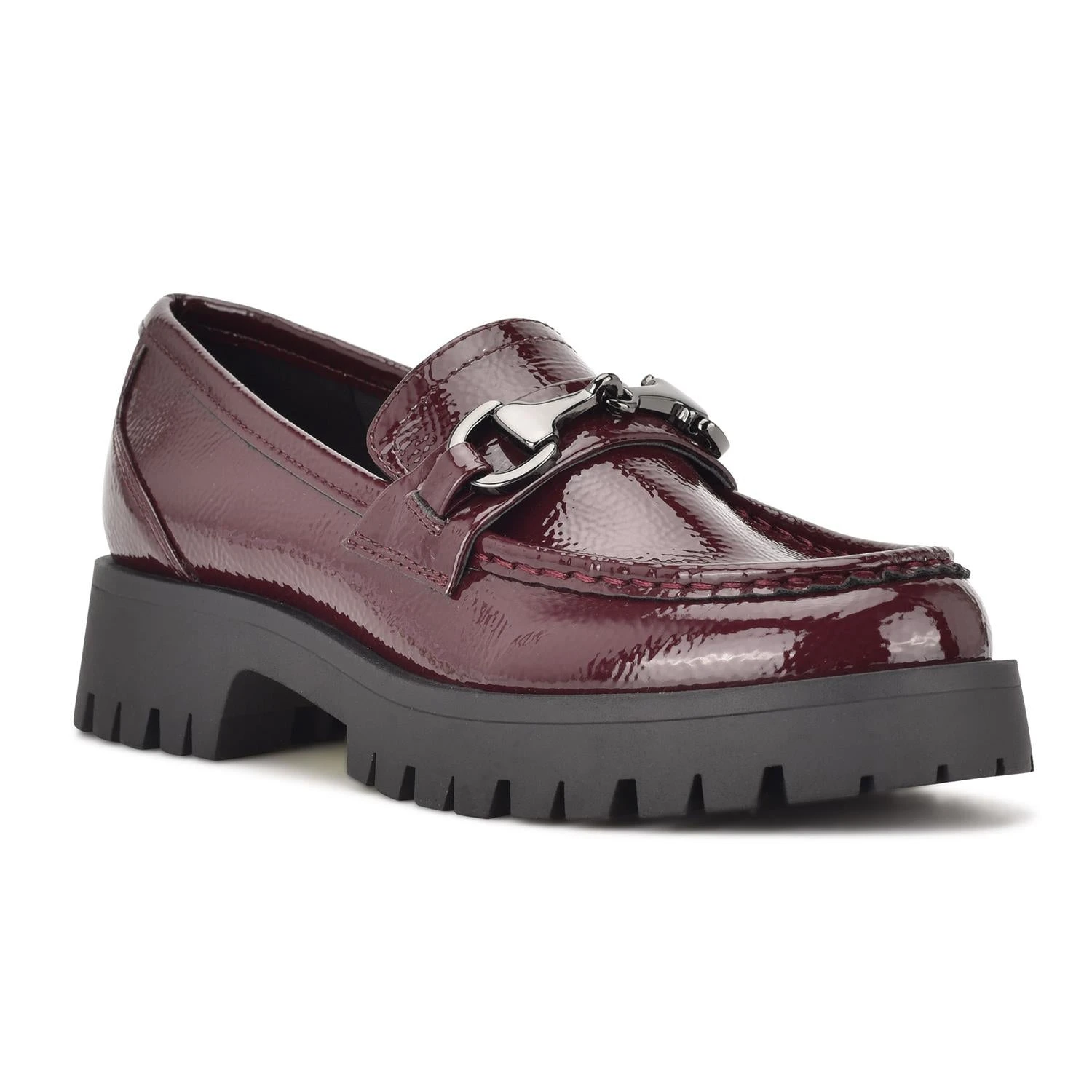 Preppy meets punk with the Gonehme loafer. It features a trendy platform lug sole bottom and equestrian inspired hardware on the upper.