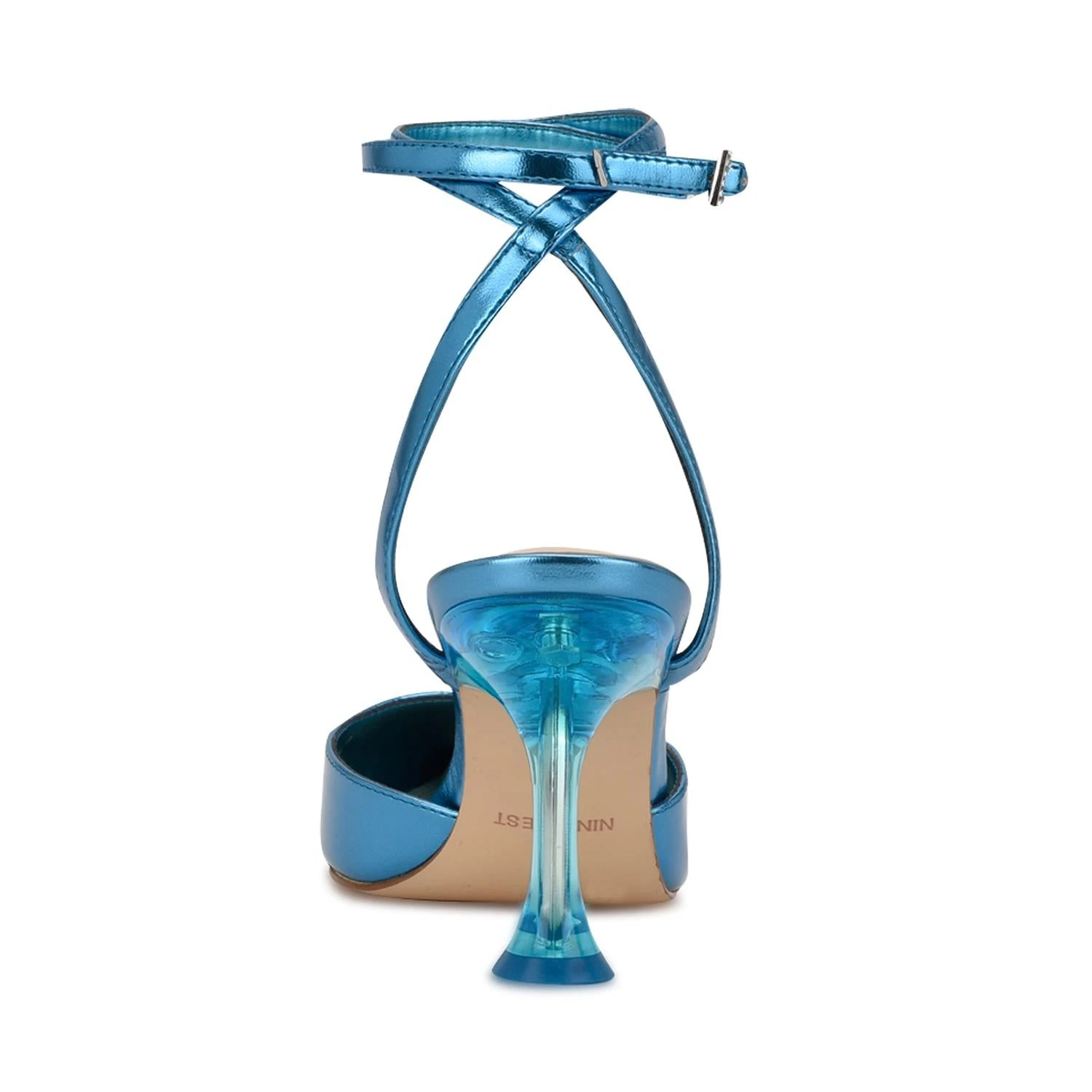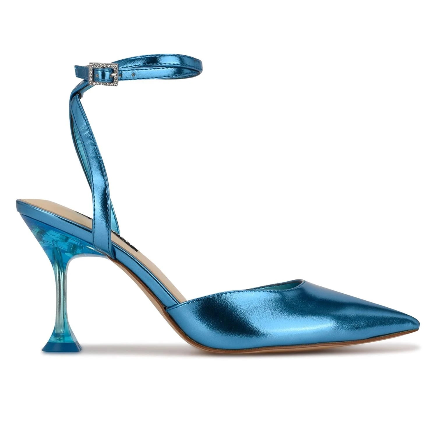 Add a little fun to your typical pointed toe dress pump with the Harlowe heel. This fall favorite features a trendy sculpted Lucite high heel and a thin barely there wrap around ankle strap.