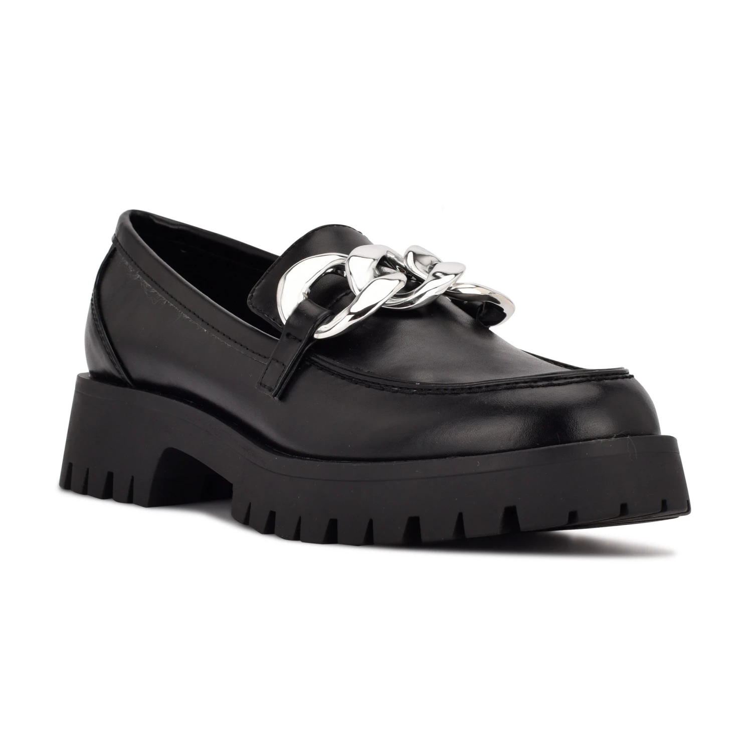 The Gracy Loafer is a classic silhouette with an added trendy metallic chain across the upper. The almond shaped toe adds extra sophistication.