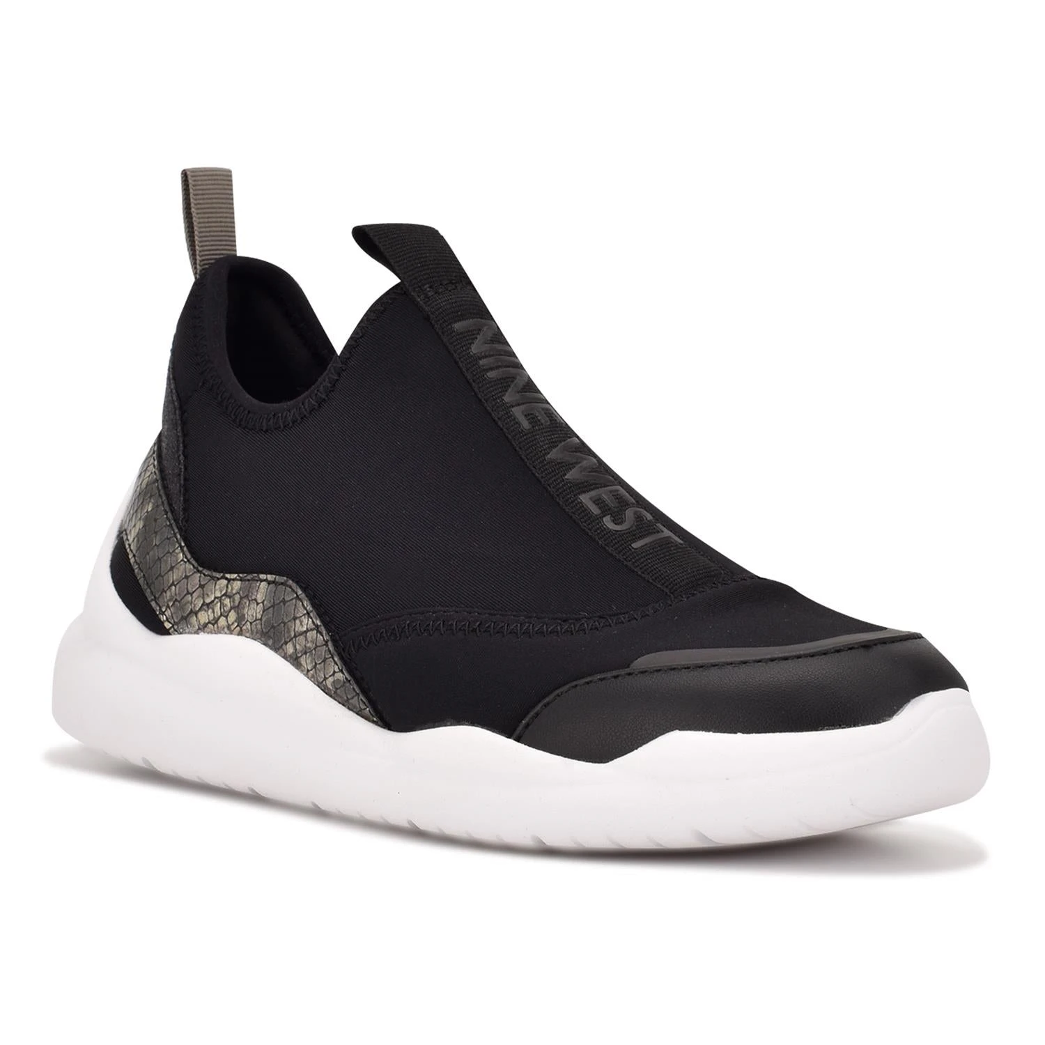 Go out in style with the Parlay fashion sneakers, perfect for any athleisure outfit. The slip on design is made of soft and trendy neoprene material and features a decorative snake skin stripe around the heel and the Nine West logo down the front.