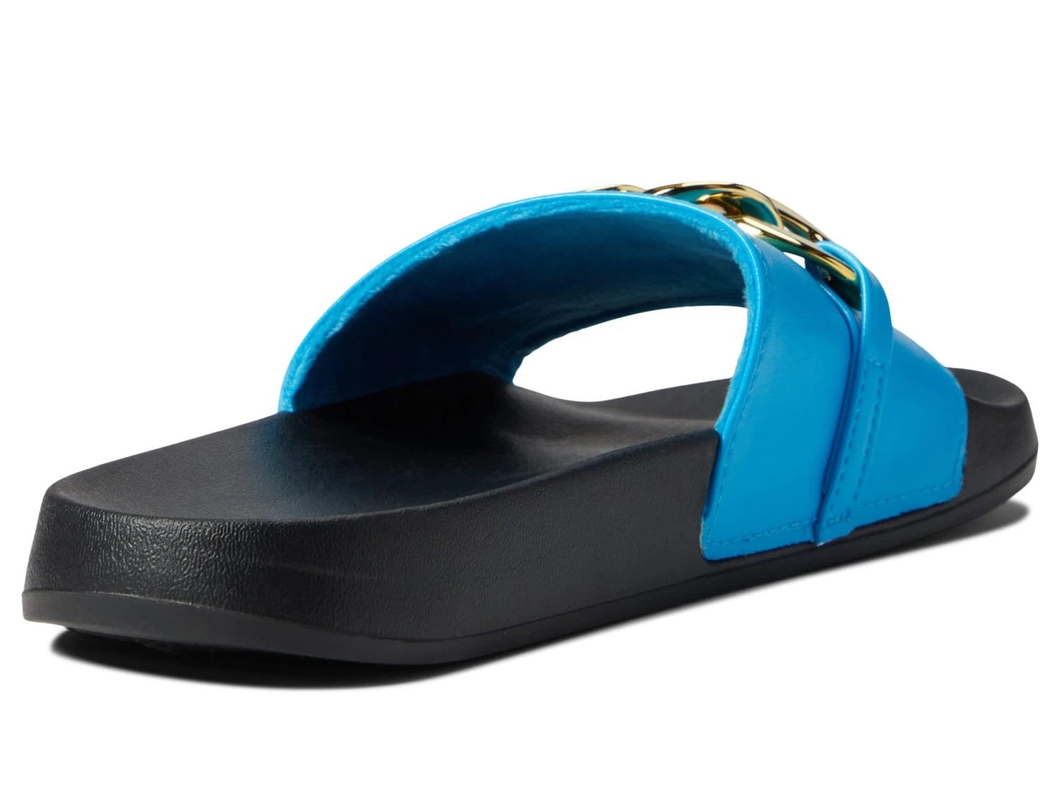 - Flat sandals showcasing leather upper with exquisite metallic embellishment on the strap.